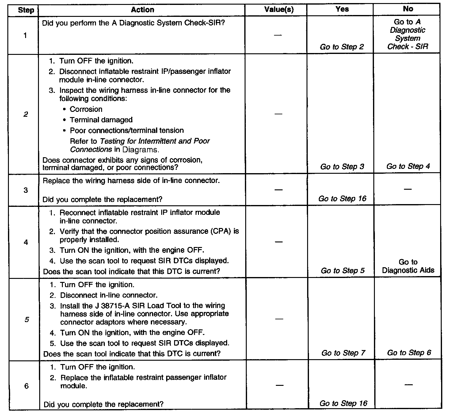5. This step checks to see if there is a malfunctioning inflatable restraint IP/passenger inflator module.