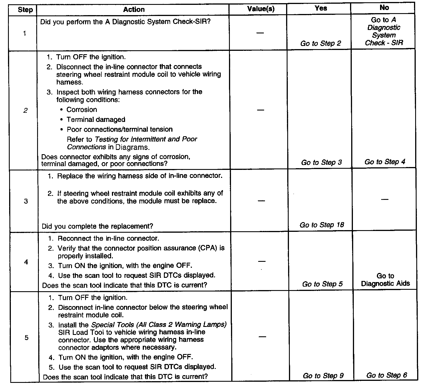 6. This step test for the proper operation of inflatable restraint steering wheel module coil and/or inflatable restraint steering wheel inflator module.