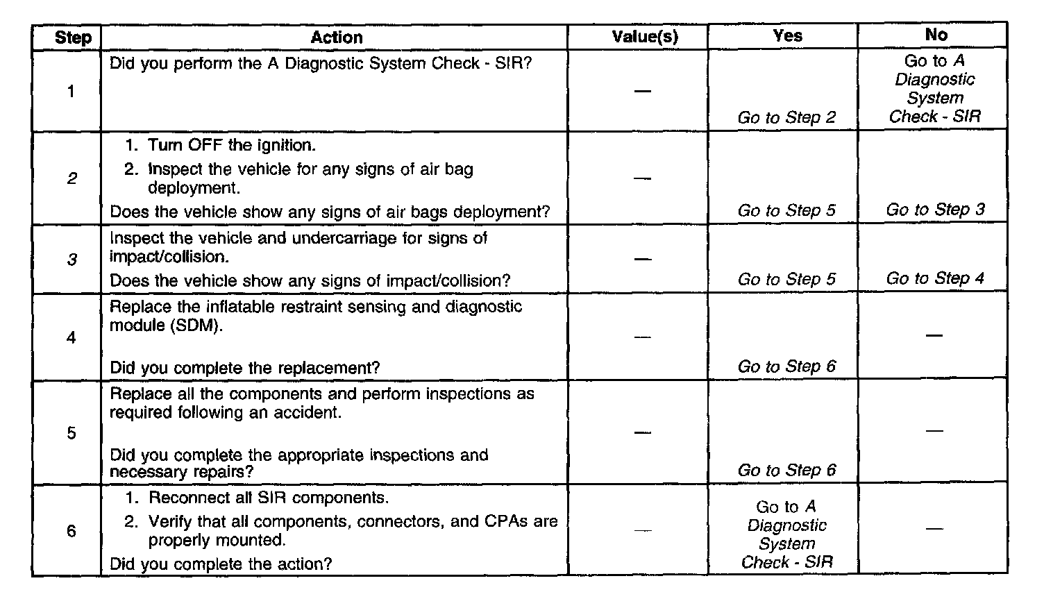 The following numbers refer to the step numbers in the diagnostic table: