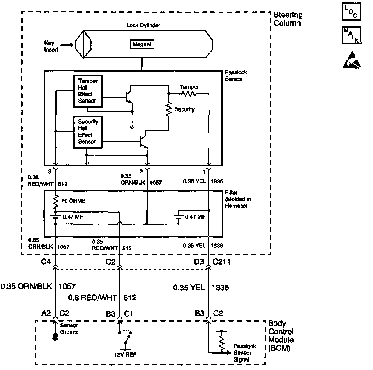 3. Tests for a short to ground in the PASSLOCK(TM) sensor or the pigtail harness.