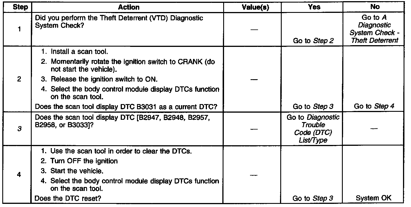 ^ A current DTC B3031 will clear immediately after a valid PASSLOCK(TM) analog voltage code is detected.