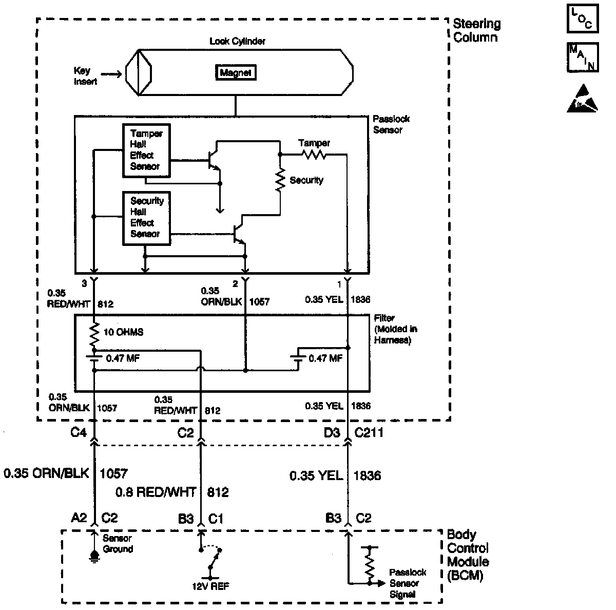 3. Tests for the proper operation of the 12v reference (Security Sensor Power) circuit, sensor ground circuit, and PASSLOCK(TM) sensor signal (data) circuit. Troubleshoot the appropriate DTC prior to diagnosing DTC B3031.