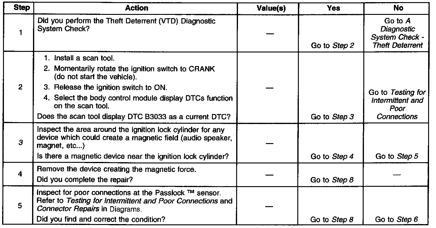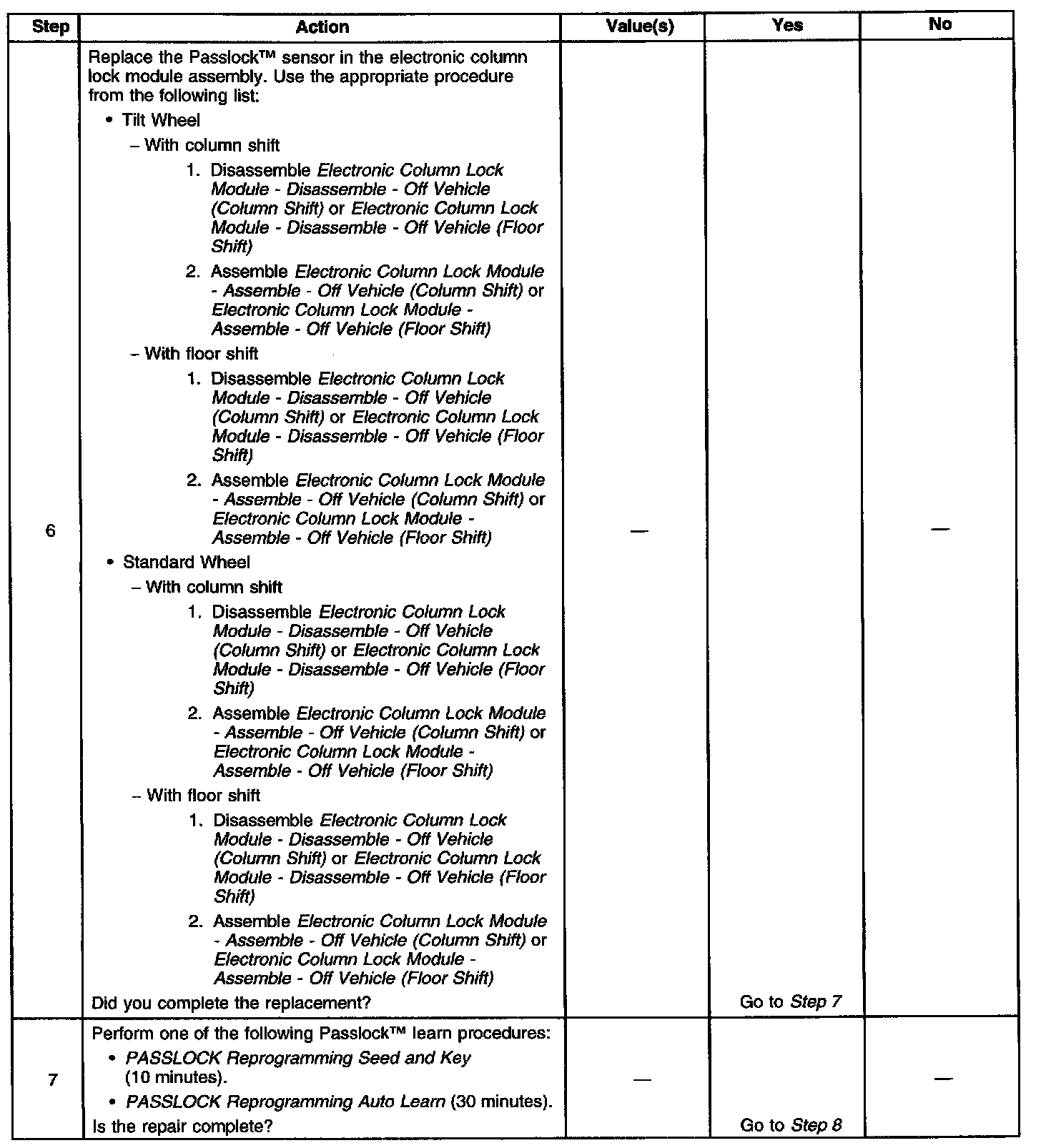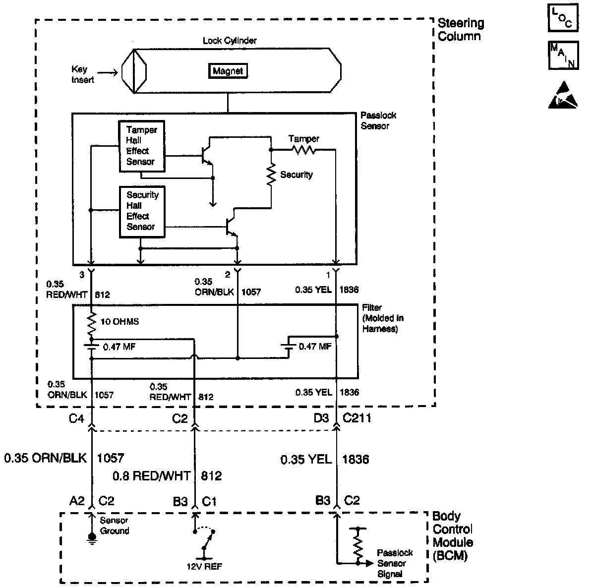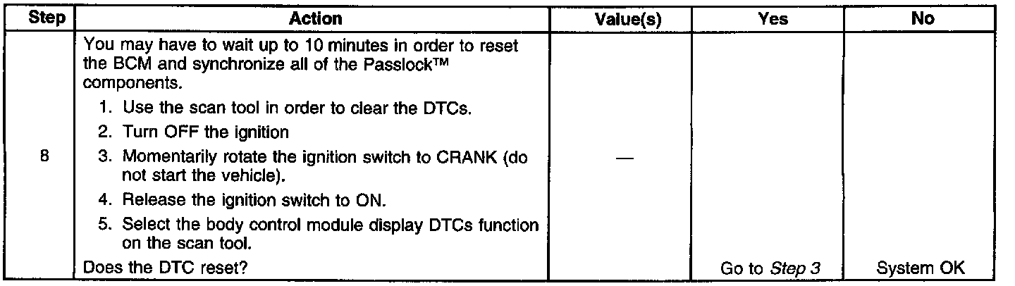 The Body Control Module (BCM) will read an analog voltage from the PASSLOCK sensor. Based on the PASSLOCK internal reference, the BCM will determine if the indicated voltage is 1 of the following conditions: