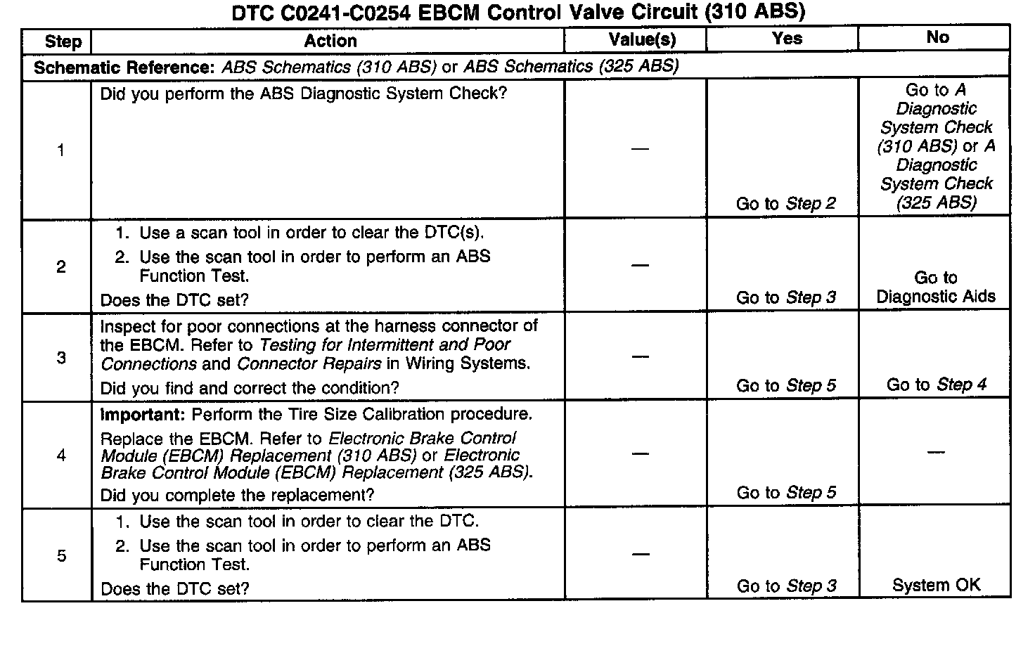 ^ The ABS is disabled for the remainder of the ignition cycle.