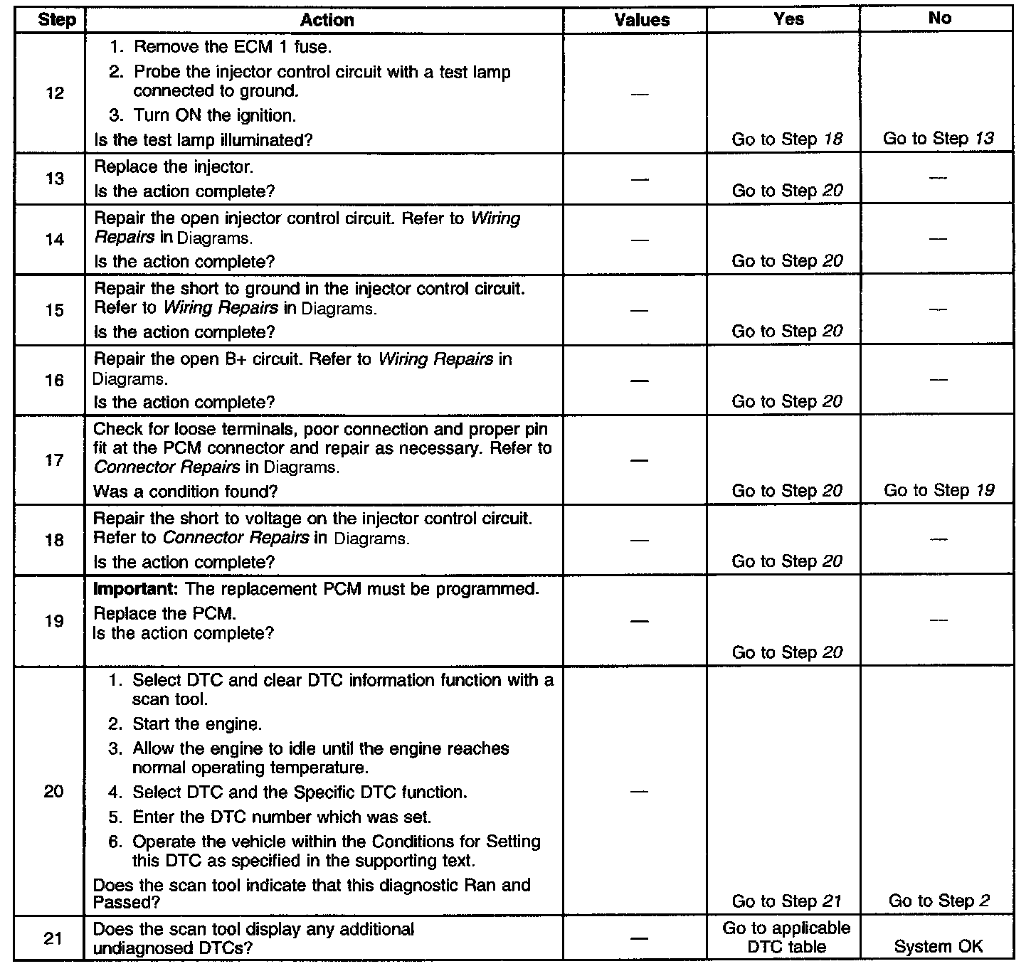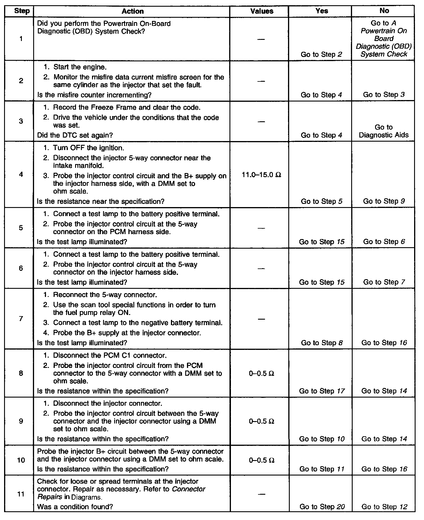 ^ When the injector driver is disabled, an engine misfire will be apparent and a misfire DTC sets.
