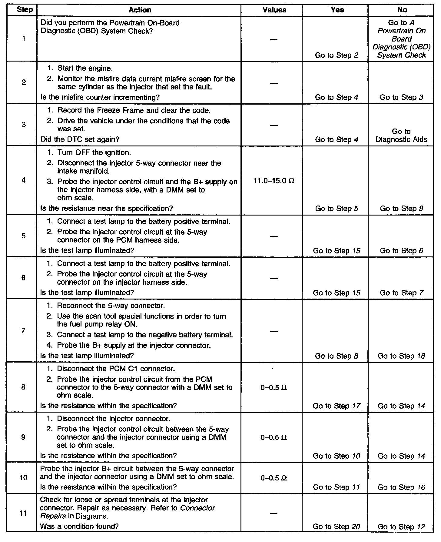 ^ When the injector driver is disabled, an engine misfire will be apparent and a misfire DTC sets.