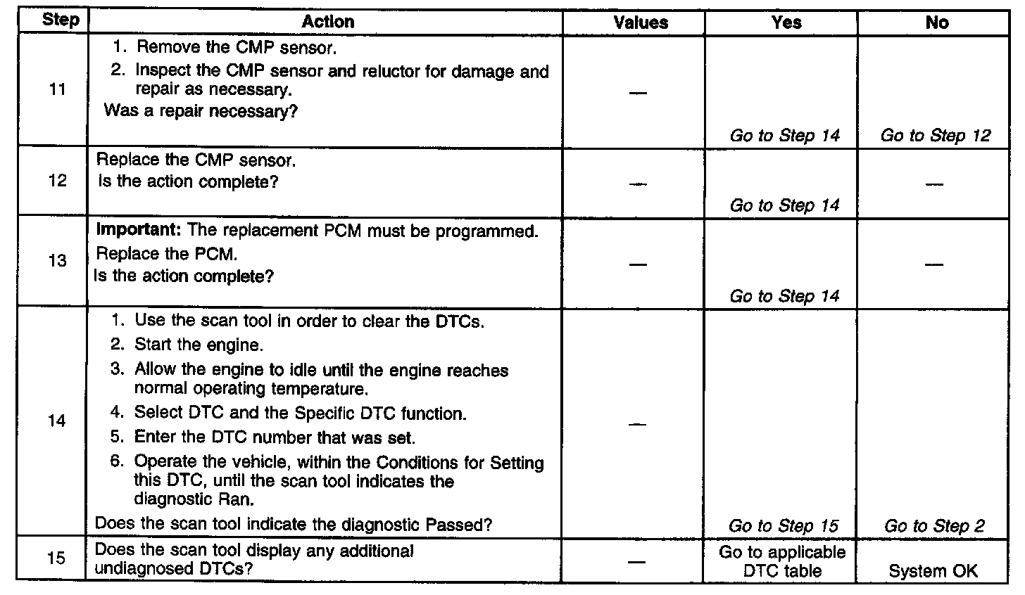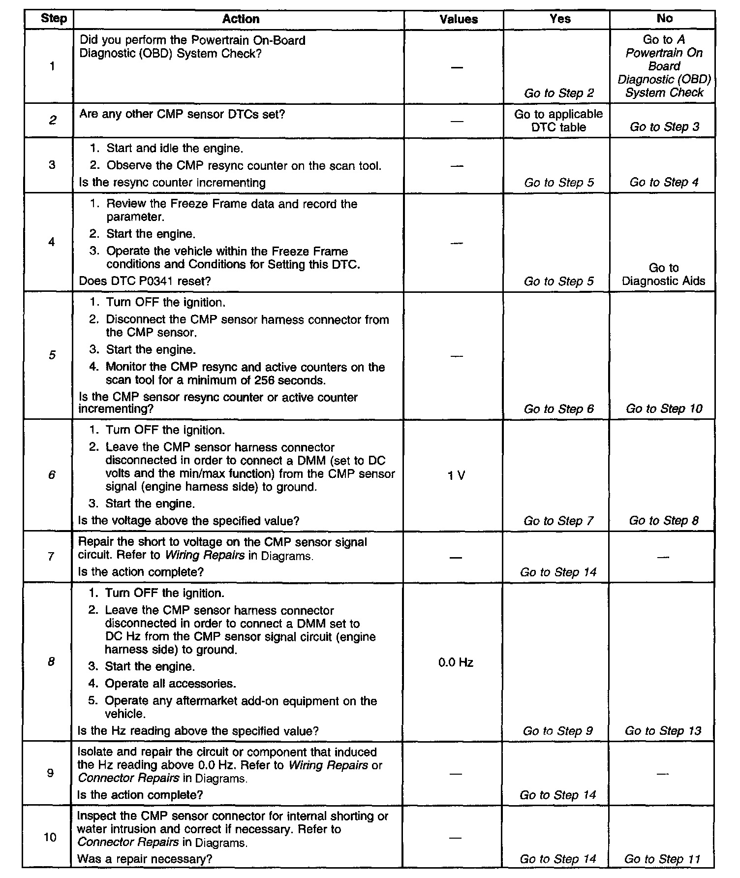 6. This step checks for a short to voltage on the CMP sensor signal circuit.