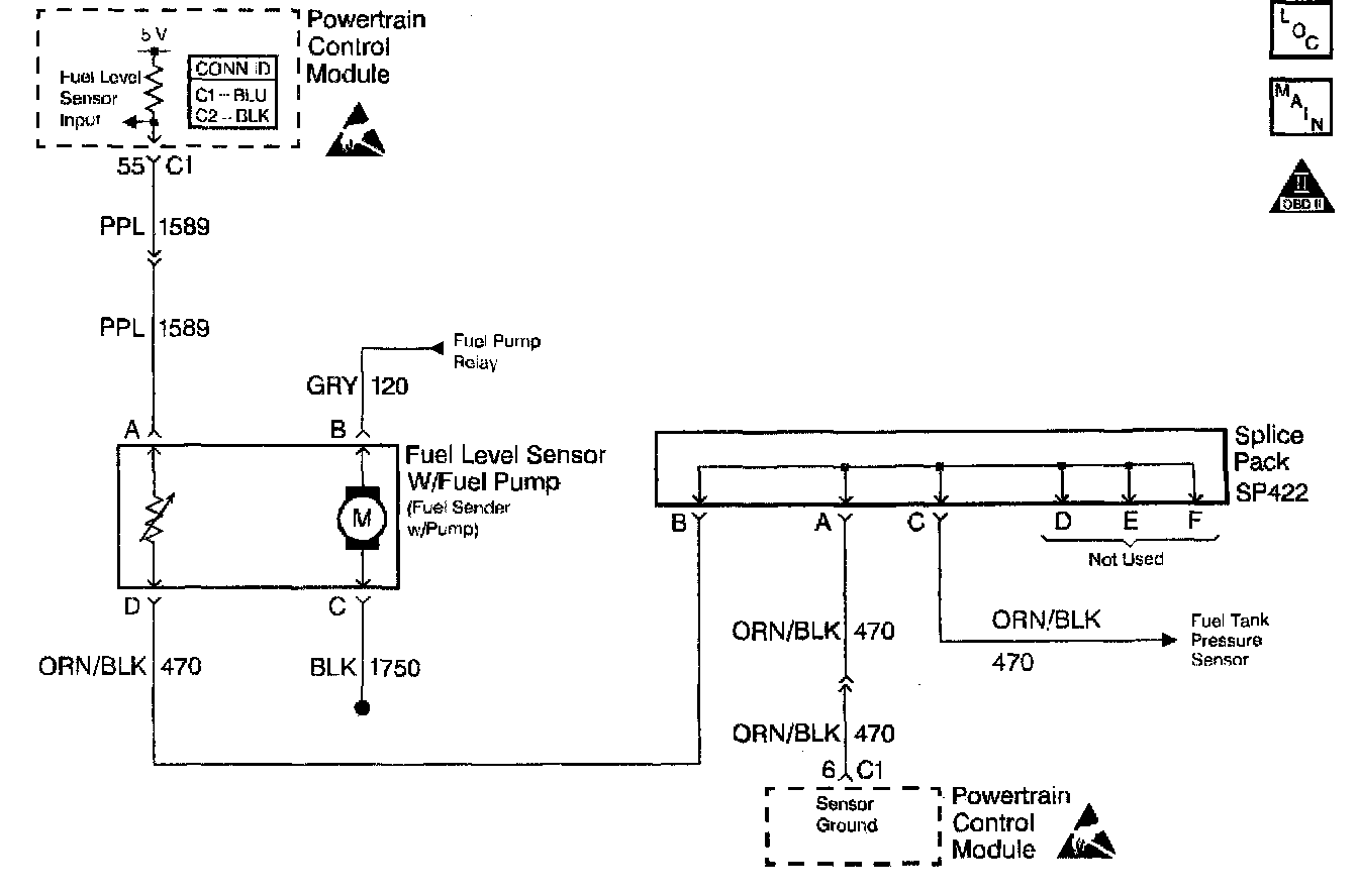 The PCM uses inputs from the Fuel Level Sensor to calculate the total fuel remaining in the fuel tank. This information is then sent to the fuel gauge via the class 2 circuit. The Fuel Level information is also used for misfire and EVAP diagnostics.