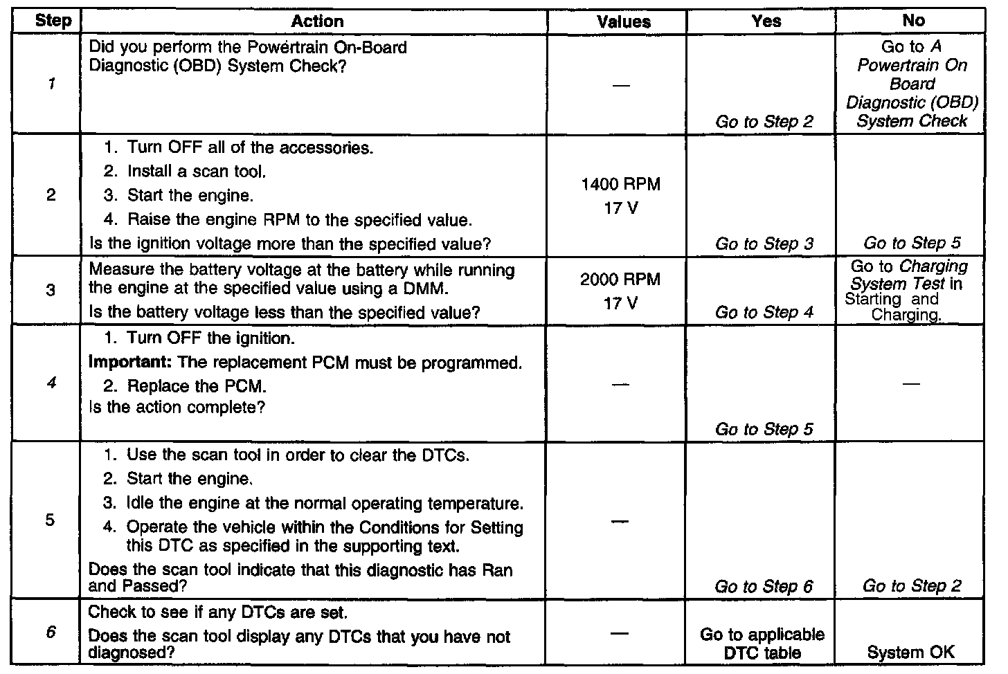 ^ Charging the battery with a battery charger and starting the engine can cause a DTC to set.