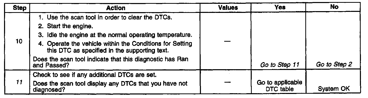 11. If no malfunctions are present at this point and no additional DTCs were set, refer to Diagnostic Aids for additional checks and information.