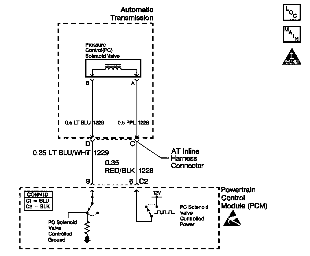 ^ Inspect the connectors at the PCM, the PC solenoid and all other circuit connecting points for an intermittent condition. Refer to Testing for Intermittent and Poor Connections in Diagrams.