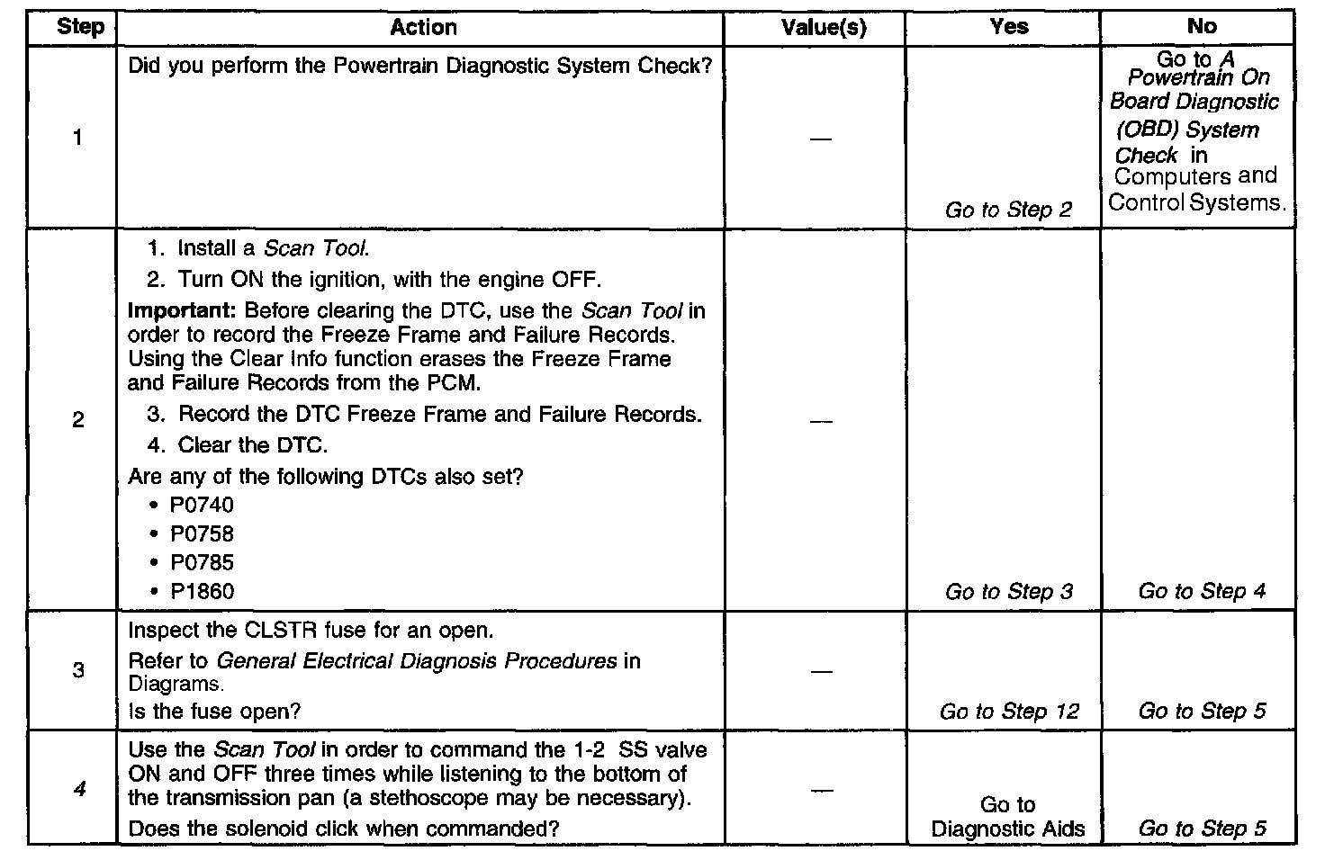 ^ Inspect the connectors at the PCM, the 1-2 SS valve and all other circuit connecting points for an intermittent condition. Refer to Testing for Intermittent and Poor Connections in Diagrams.