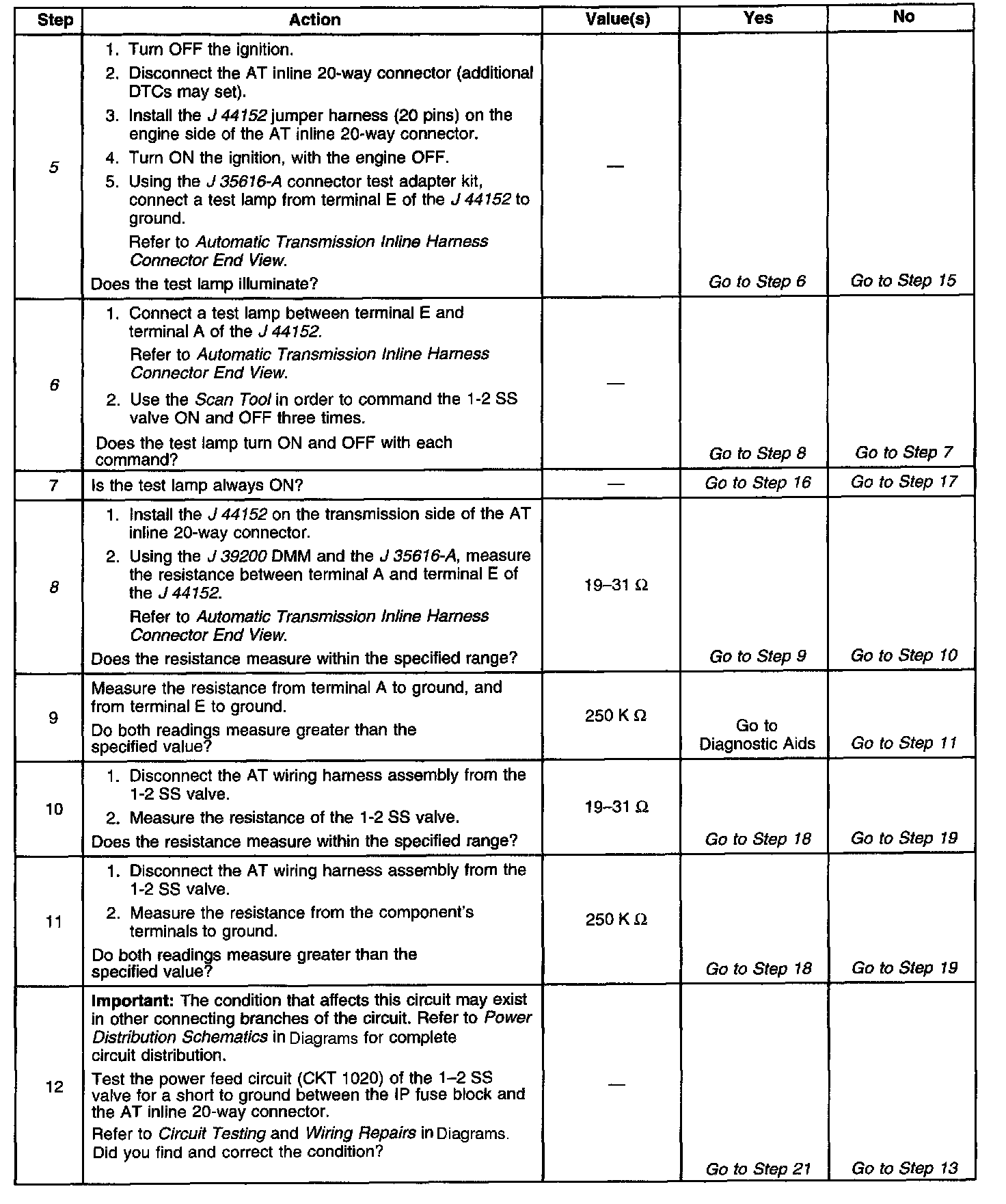 8. This step measures the resistance of the AT wiring harness assembly and the 1-2 SS valve.