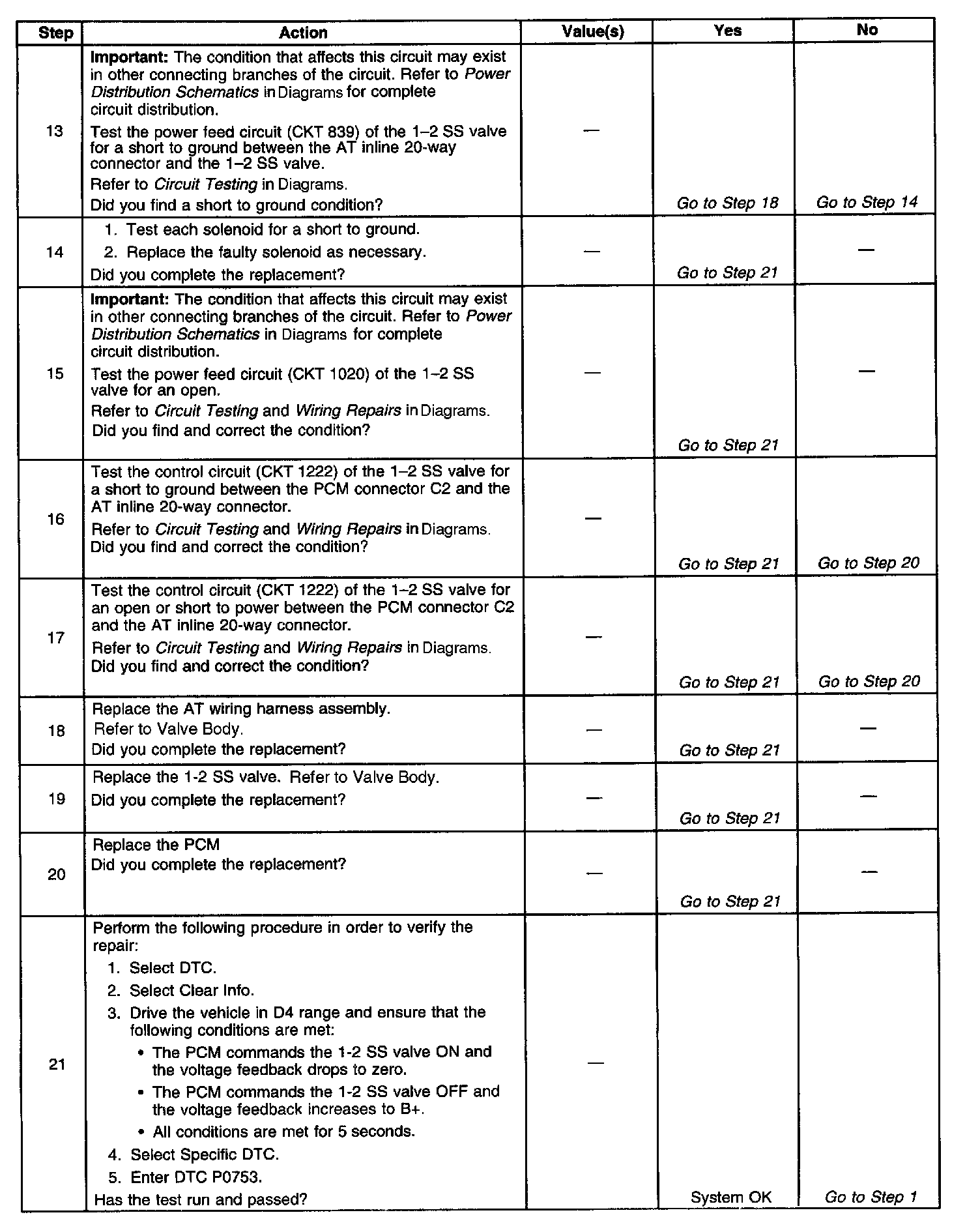 When the PCM detects a continuous open, short to ground or short to power in the 1-2 SS valve circuit, then DTC P0753 sets. DTC P0753 is a type B DTC.