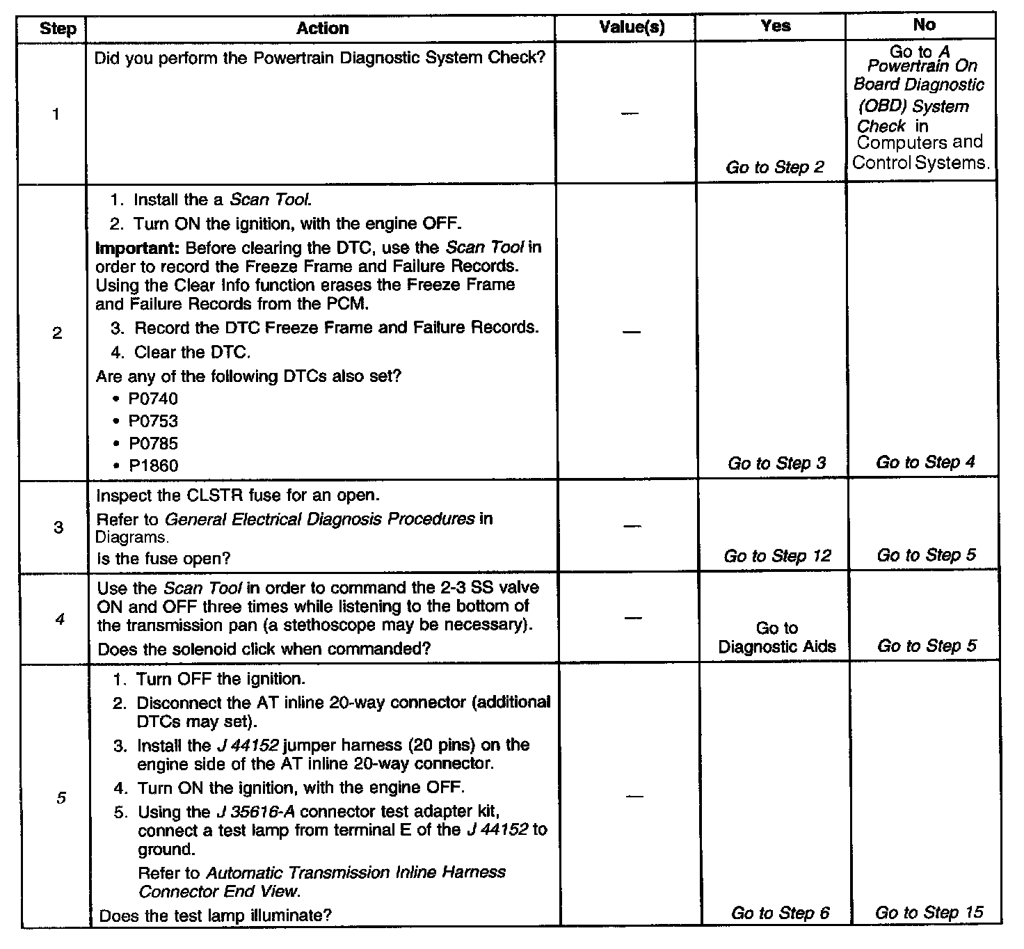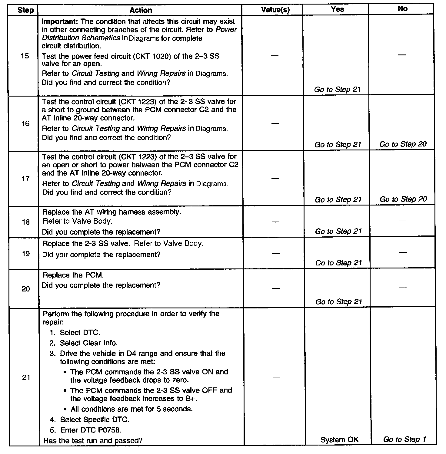 ^ Inspect the connectors at the PCM, the 2-3 SS valve and all other circuit connecting points for an intermittent condition. Refer to Testing for Intermittent and Poor Connections in Diagrams.
