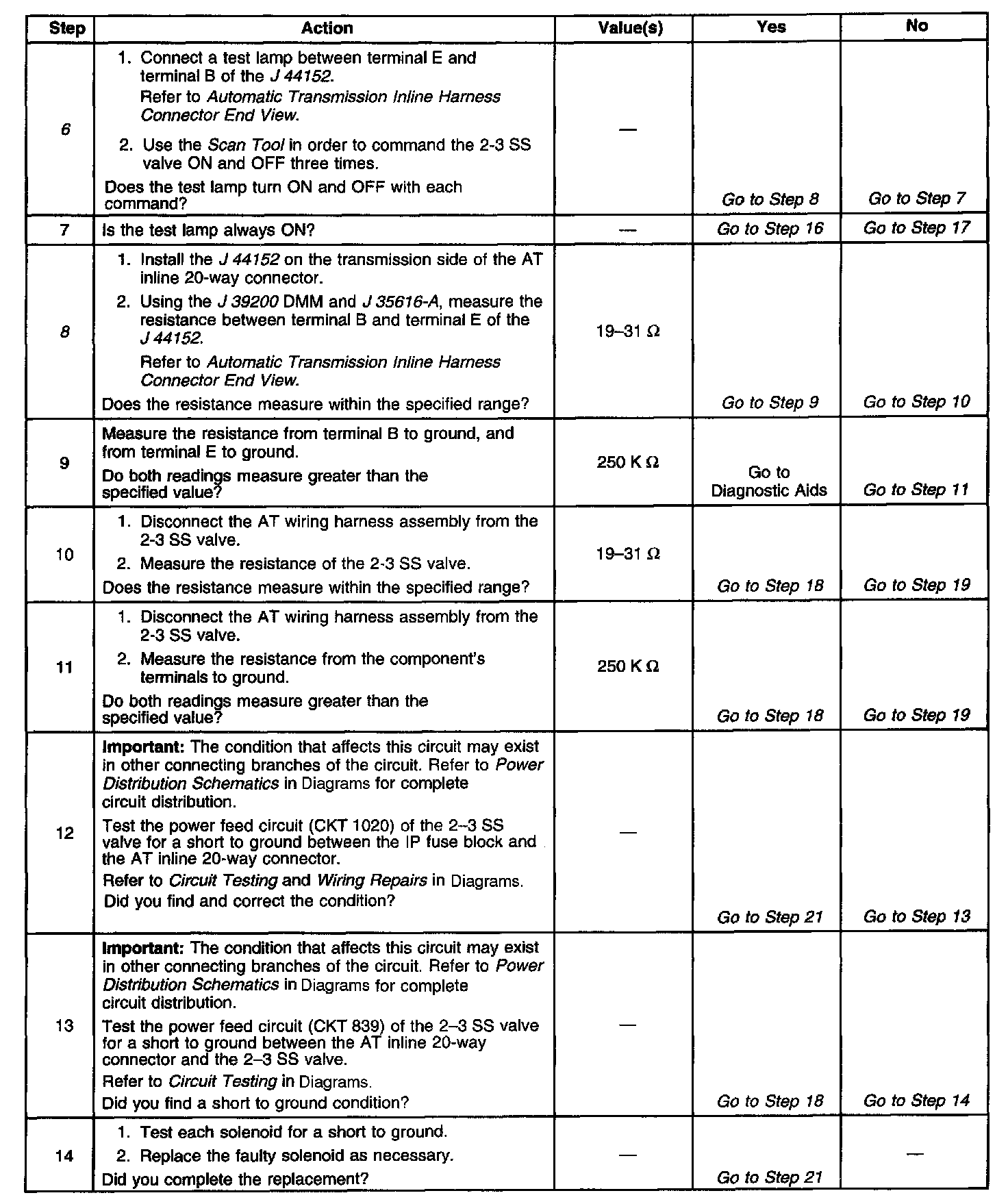4. This step tests the function of the 2-3 SS valve and the Automatic Transmission (AT) wiring harness assembly.