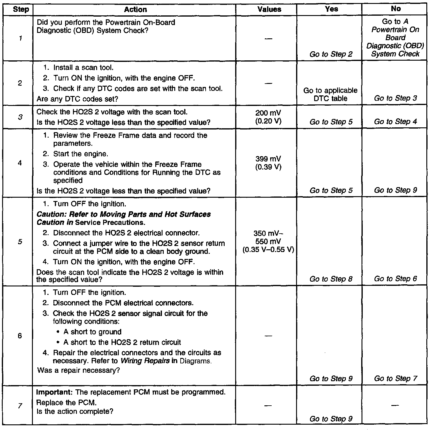^ A poor electrical connection or a damaged harness-Inspect the harness for a short to ground in the HO2S 2 signal circuit. Ensure that the HO2S 2 pigtail is not contacting the exhaust.