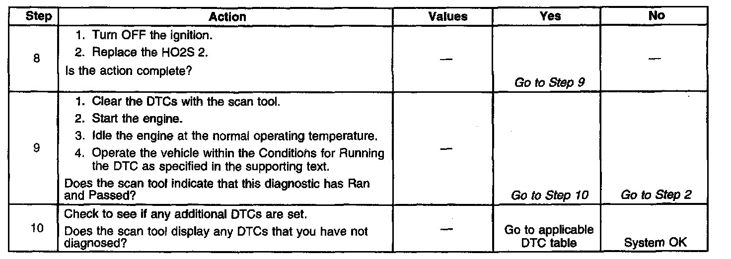 ^ Intermittent test-Observe the HO2S 2 on the scan tool while moving any of the related electrical connectors and the wiring harness with the ignition ON. If the malfunction is induced, the HO2S 2.display will change. This should help isolate the location of the malfunction.