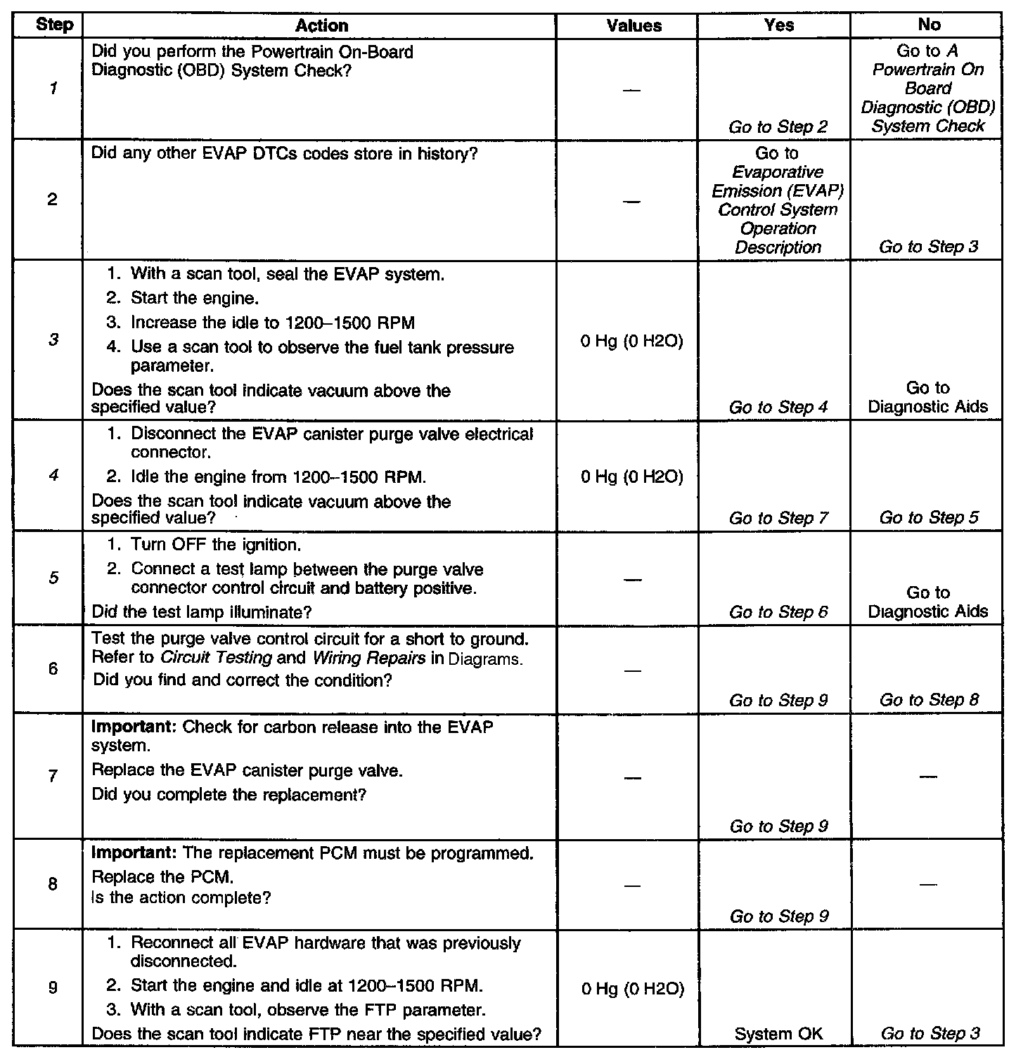 1. The Powertrain On Board Diagnostic (OBD) System Check prompts you to complete some of the basic check and store the Freeze Frame and Failure Records data on the scan tool if applicable.