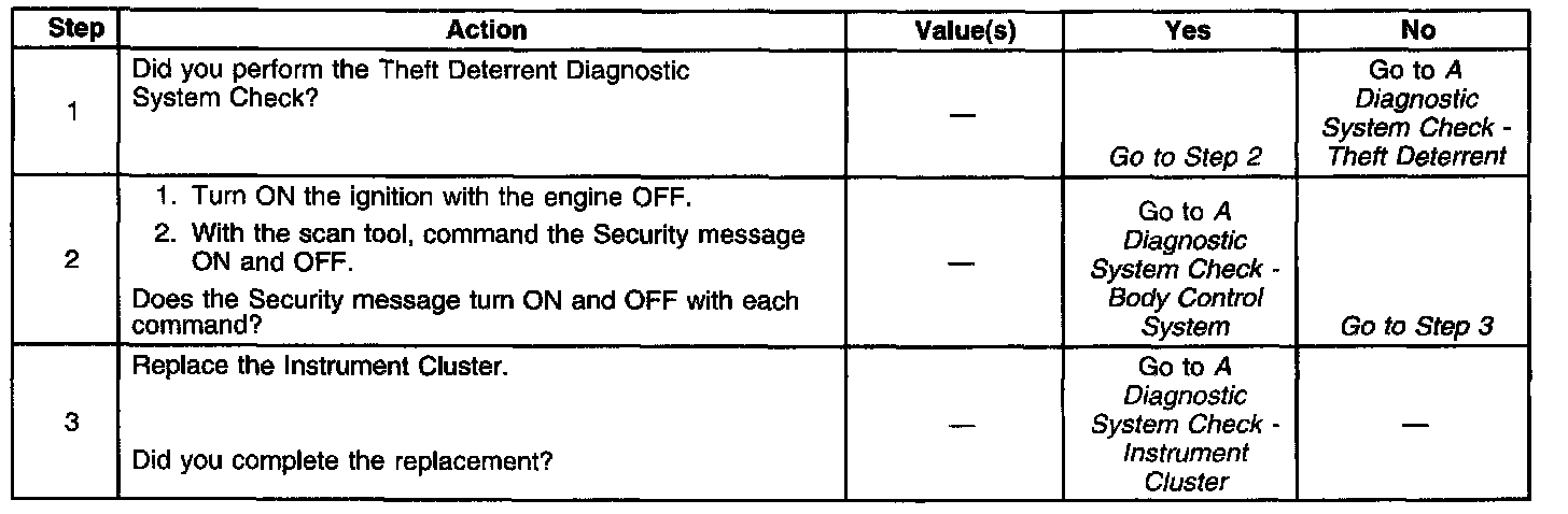 SECURITY Indicator Inoperative