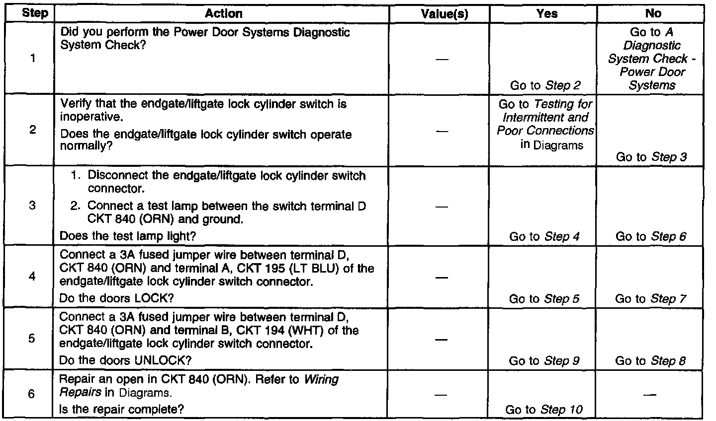 Power Door Locks - Switch Inoperative - Rear