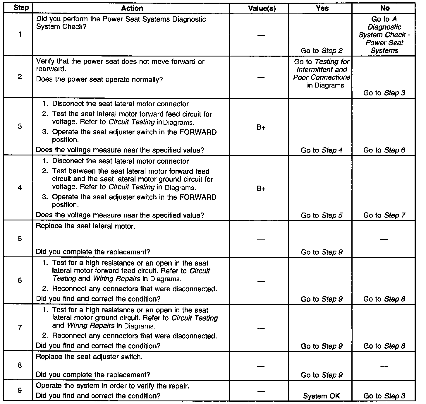 Power Seat Does Not Move Forward/Rearward