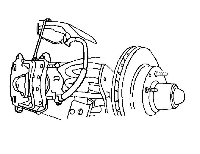 Notice: Do not allow the brake components to hang from the flexible brake hoses. Damage to the brake hoses could result.