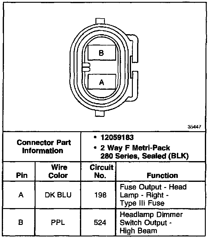 Headlamp, RH High Beam Connector: