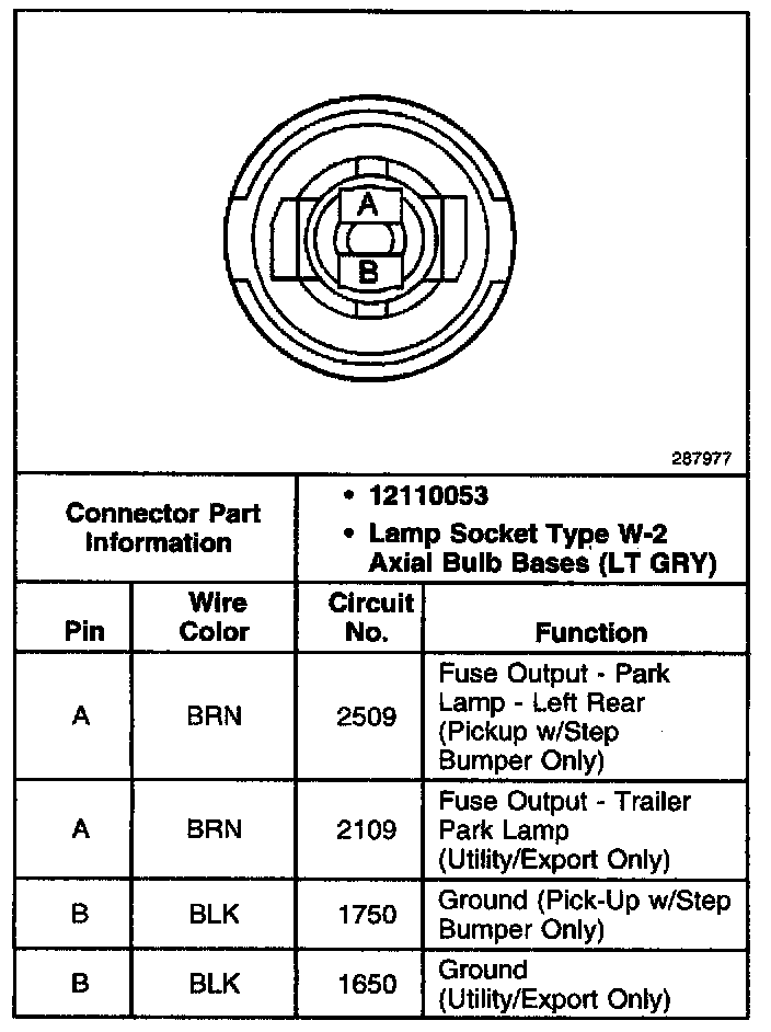 Rear License Plate Lamp, LH Connector (Utility, Export, And Pickup W/Step Bumper):