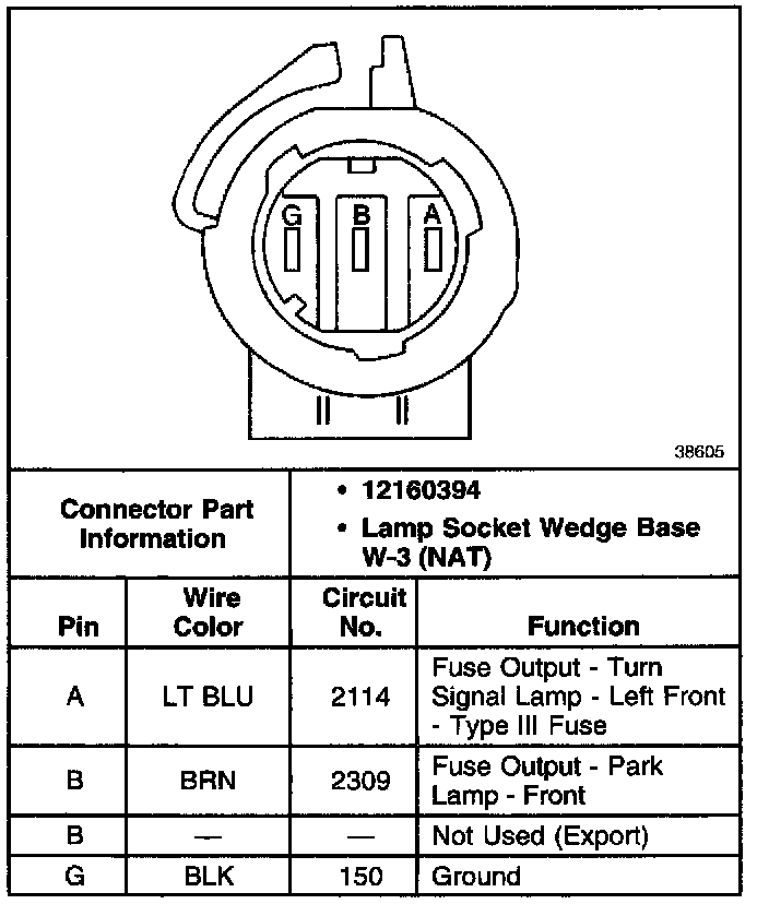 Park And Turn Signal Lamp, LF Connector: