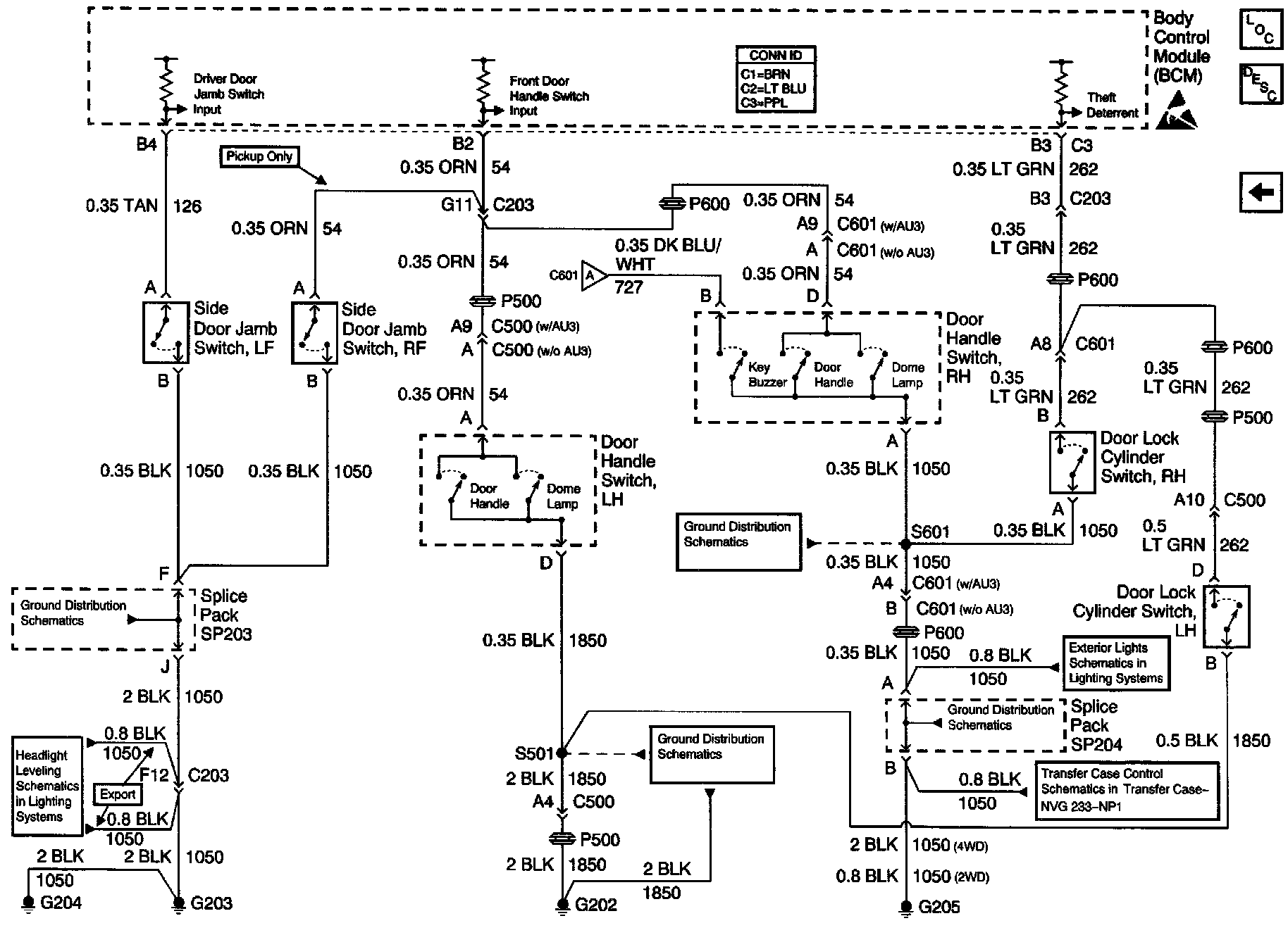 Theft Deterrent System Schematics: Door Handle Switch Inputs: