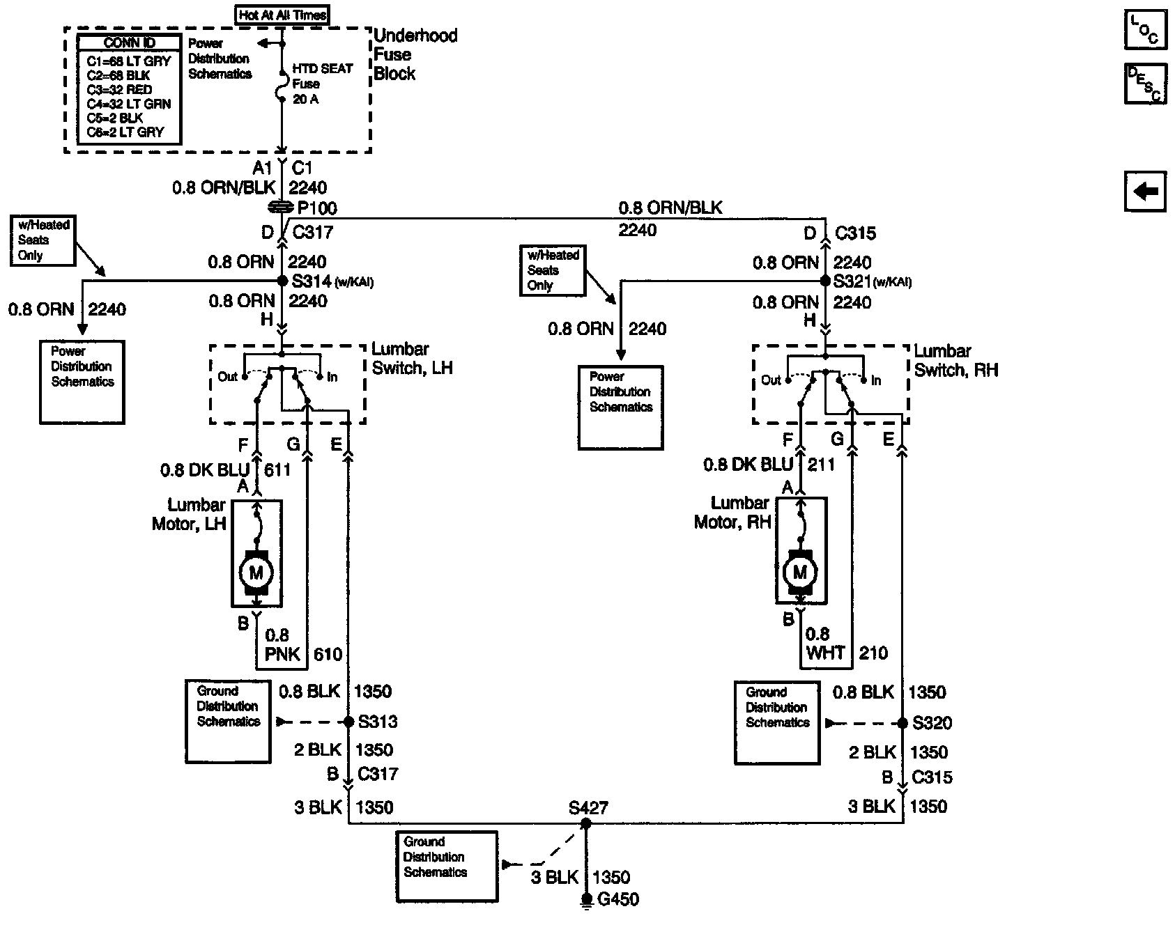 Lumbar Support Schematics: Lumbar With Memory Seats: