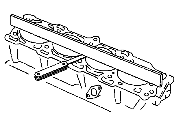 8. Use a straight edge and a feeler gage to check the deck surface for flatness. Carefully machine minor irregularities. Replace the block if more than 0.254 mm (0.010 inch) must be removed.