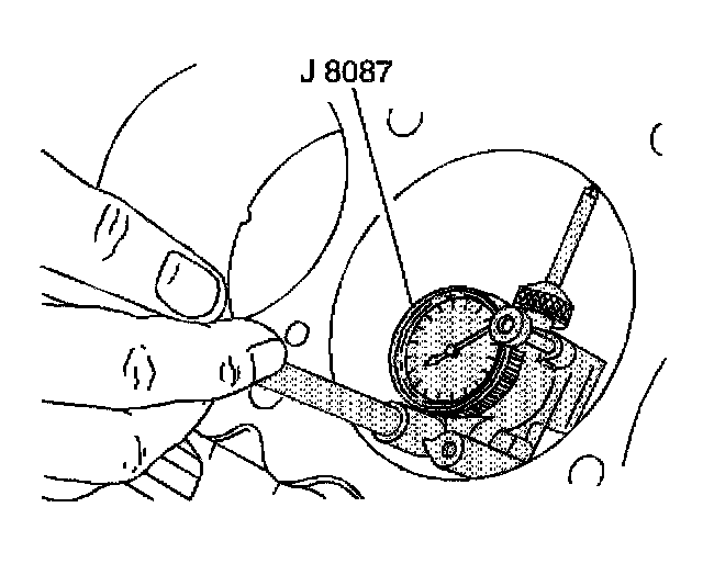 12. Inspect the crankshaft main bearing bores. Use a J 8087 to measure the bearing bore concentricity and alignment at the following locations:
