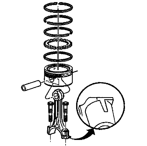 Notice: Use a piston ring expander to install the piston rings. The rings may be damaged if expanded more than necessary.