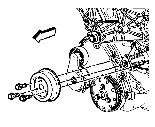 1. Remove the water pump drive pulley and bolts.