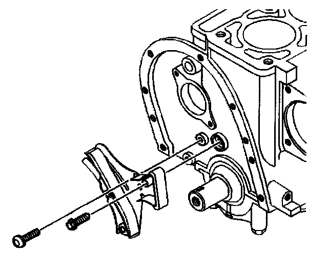 6. Install the timing chain tensioner. Do not tighten the timing chain tensioner bolts.