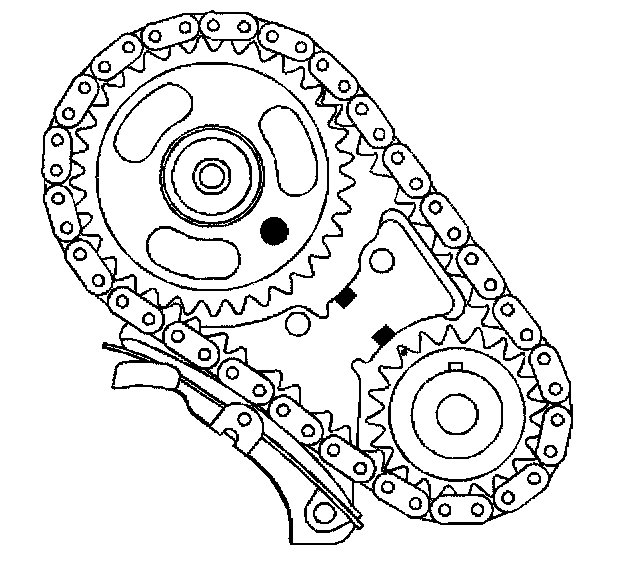8. Align the camshaft timing mark with the tab on the timing chain tensioner.