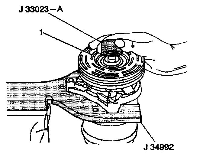 7. Use the following procedure in order to properly support the rotor hub during bearing removal in order to prevent pulley rotor damage: