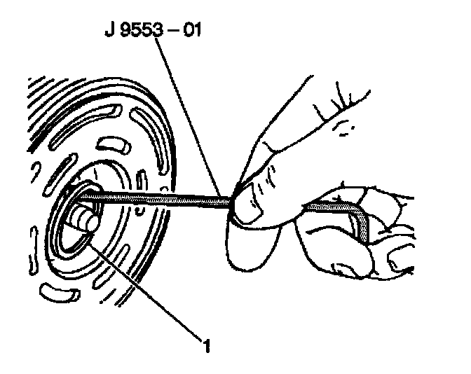 7. Remove and discard the seal seat O-ring (1) from the compressor neck using the J 9553-01.