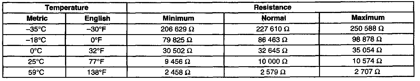 Outside Air Temperature Sensor Resistance: