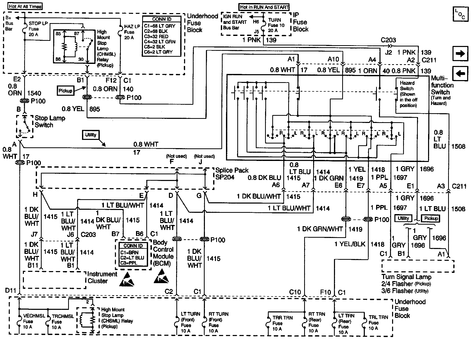 Power Distribution Schematics: Stop, Turn And Hazard Bus Bar: