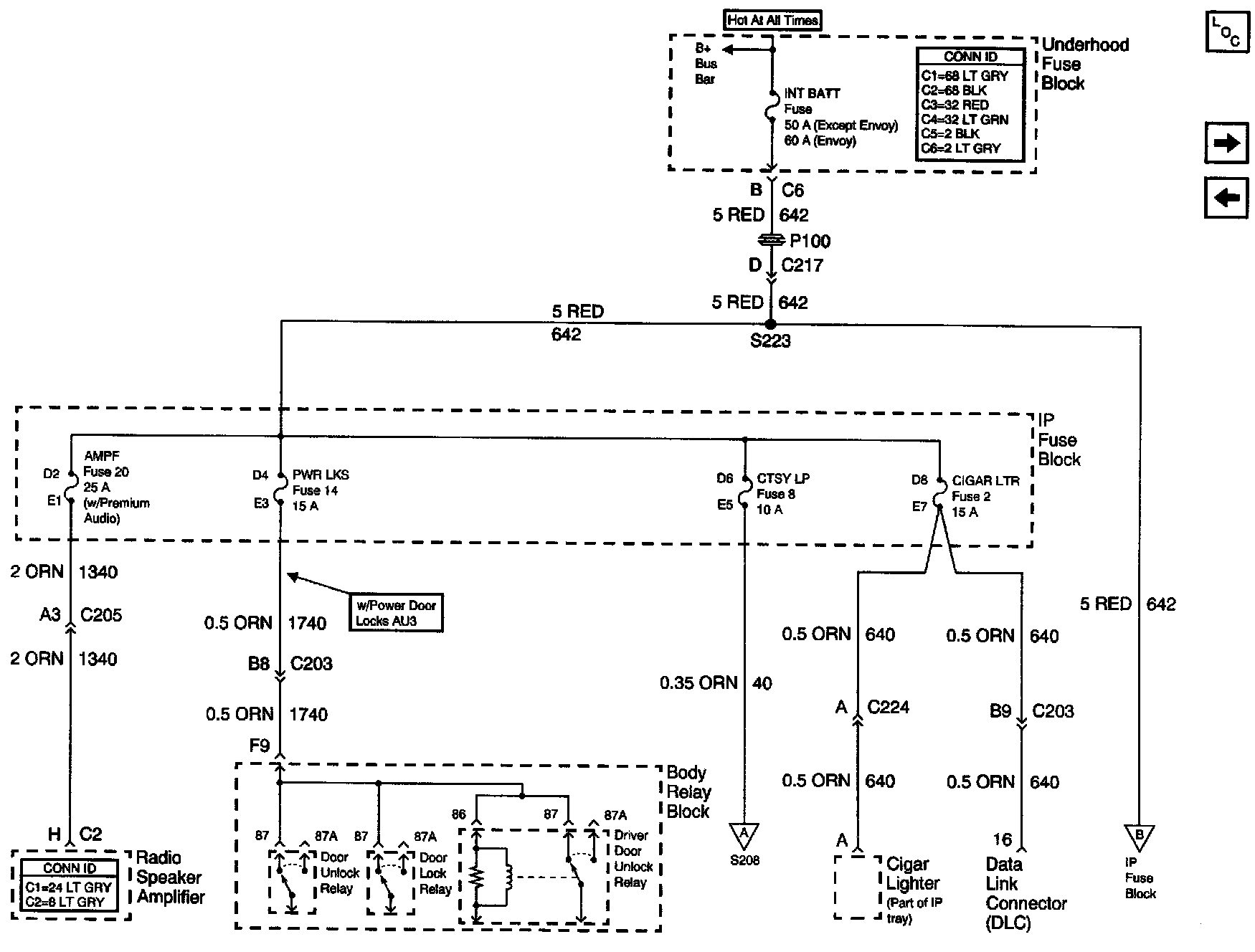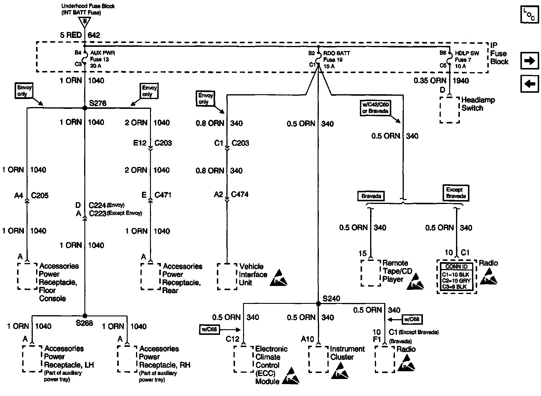 Power Distribution Schematics: AUX PWR, RDO BATT And HDLP SW Fuses: