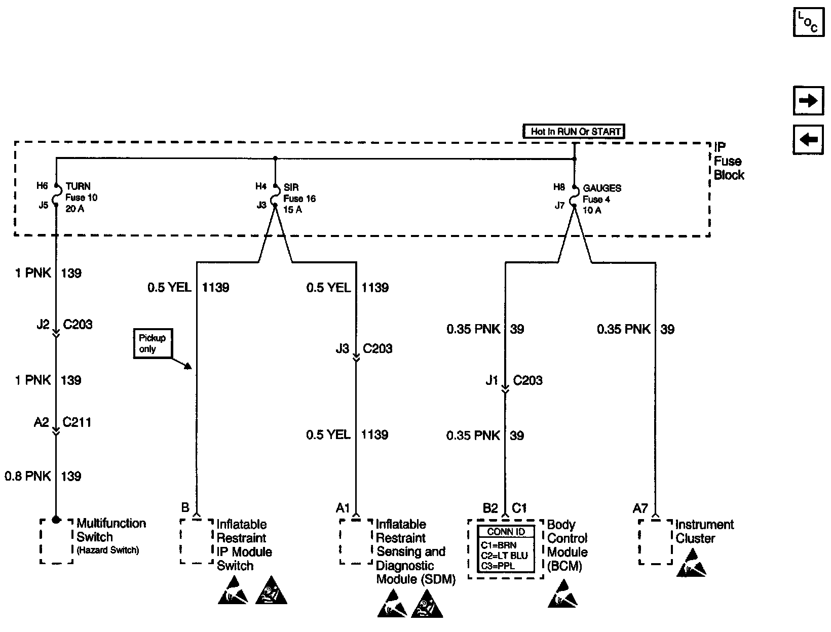 Power Distribution Schematics: TURN, SIR And GAUGES Fuses: