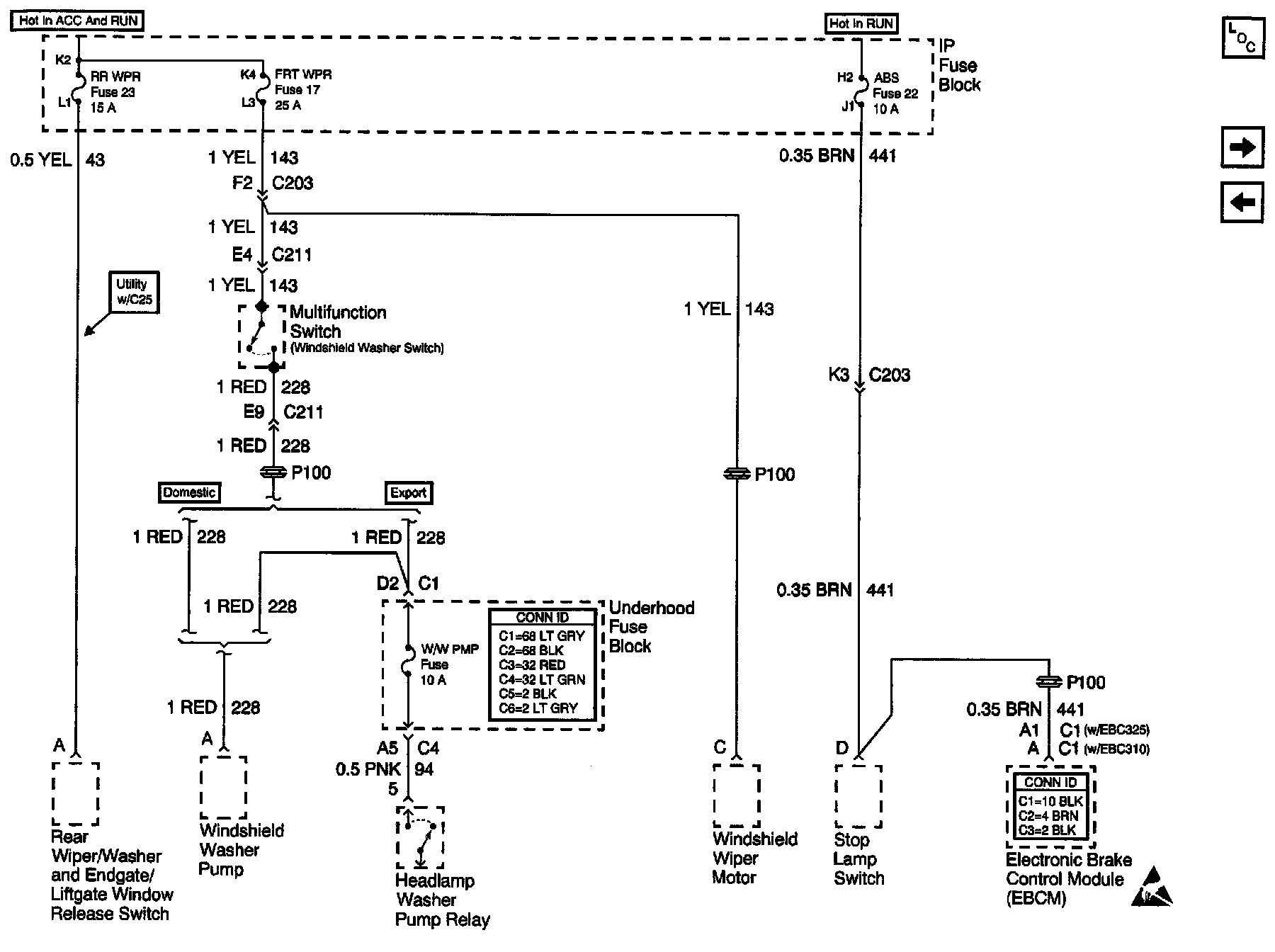 Power Distribution Schematics: RR WPR, FRT WPR And ABS Fuses: