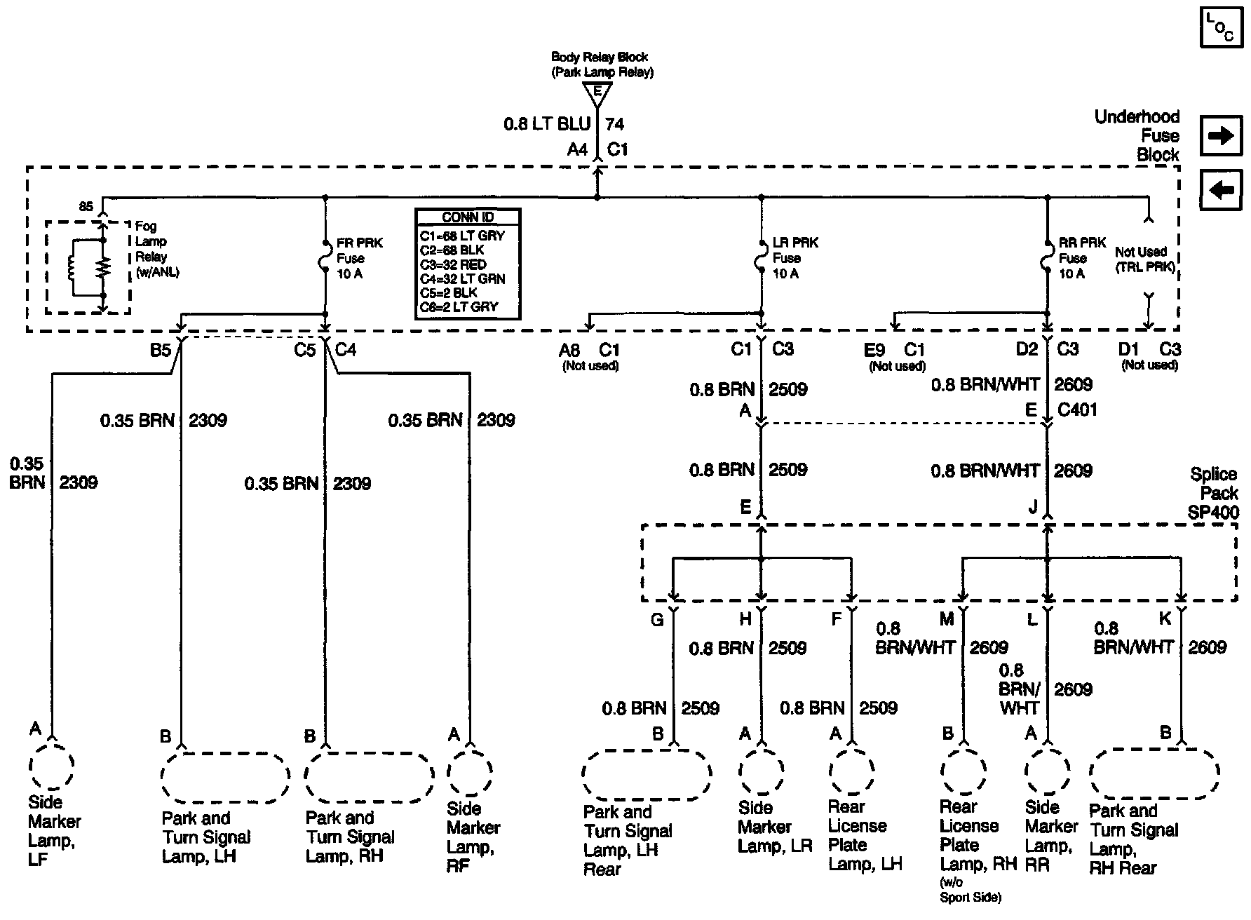 Power Distribution Schematics: FR PRK, LR PRK Fuses And Fog Lamp Relay (Pickup):