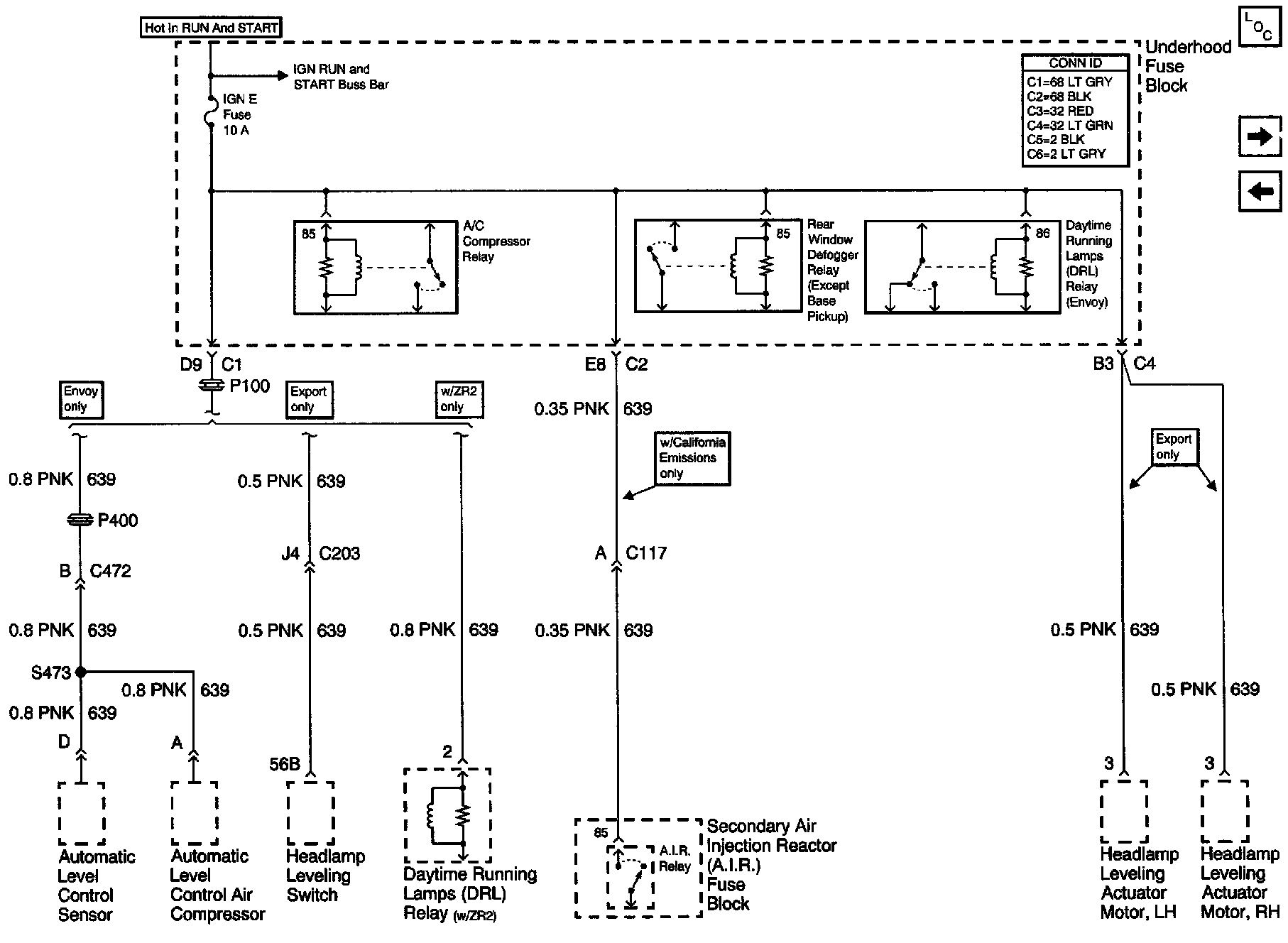 Power Distribution Schematics: IGN E Fuse And A/C Compressor, Rear Defogger, DRL Relays: