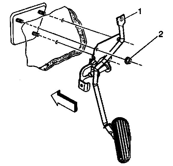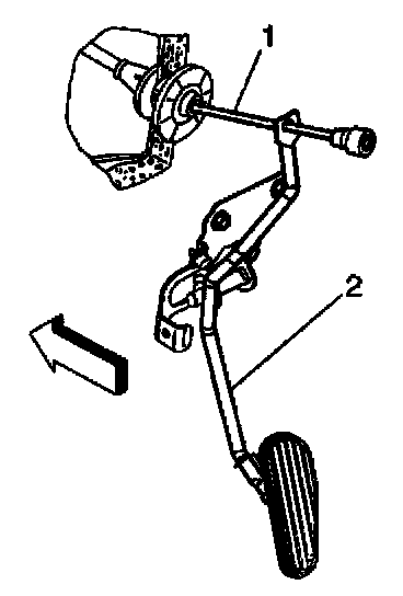 2. Remove the accelerator cable from the slot in the pedal assembly (1).
