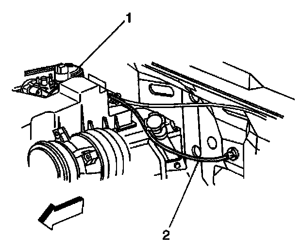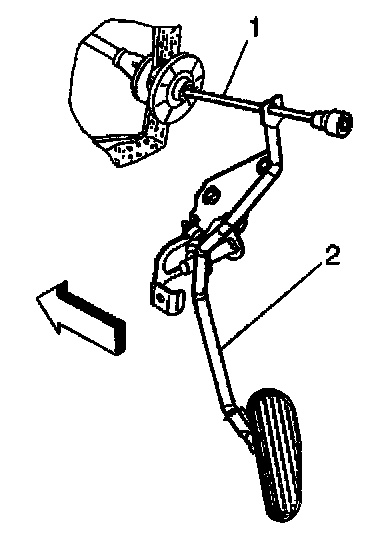 2. Remove the accelerator cable (1) from the slot in pedal assembly (2).