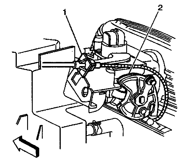 3. Pull the cable conduit fitting away from the throttle lever cam (2).